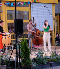 Das folgende Open-Air-Bühnenprogramm konnte dann natürlich nicht verhehlen, dass es sich beim Wolfram-von-Eschenbach-Gymnasium um ein musisches Gymnasium voller entsprechender Talente handelt, aber neben „lokalen Größen“ wie der Big Band WEGroove unter der Leitung von Helmuth Kraus mit nord- wie südamerikanischen Klängen und Eva-Maria Betz’ Singing Girls gab es auch beeindruckende Einlagen von „Stargästen“ beispielsweise im Bereich Tanz von den Schwabanesen und dem Verein für Irischen Stepptanz „Siona Irish Dance“ aus Fürth.